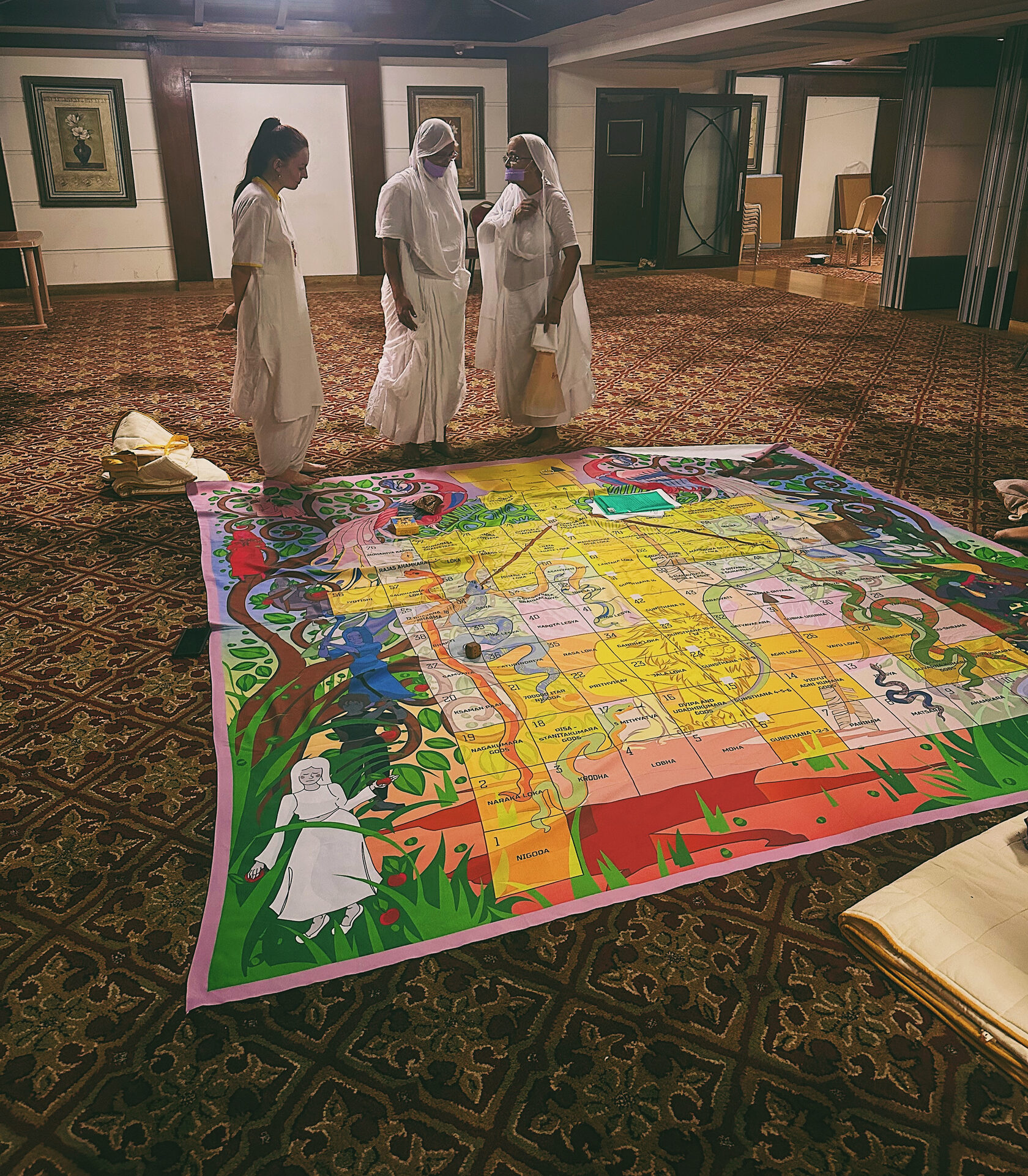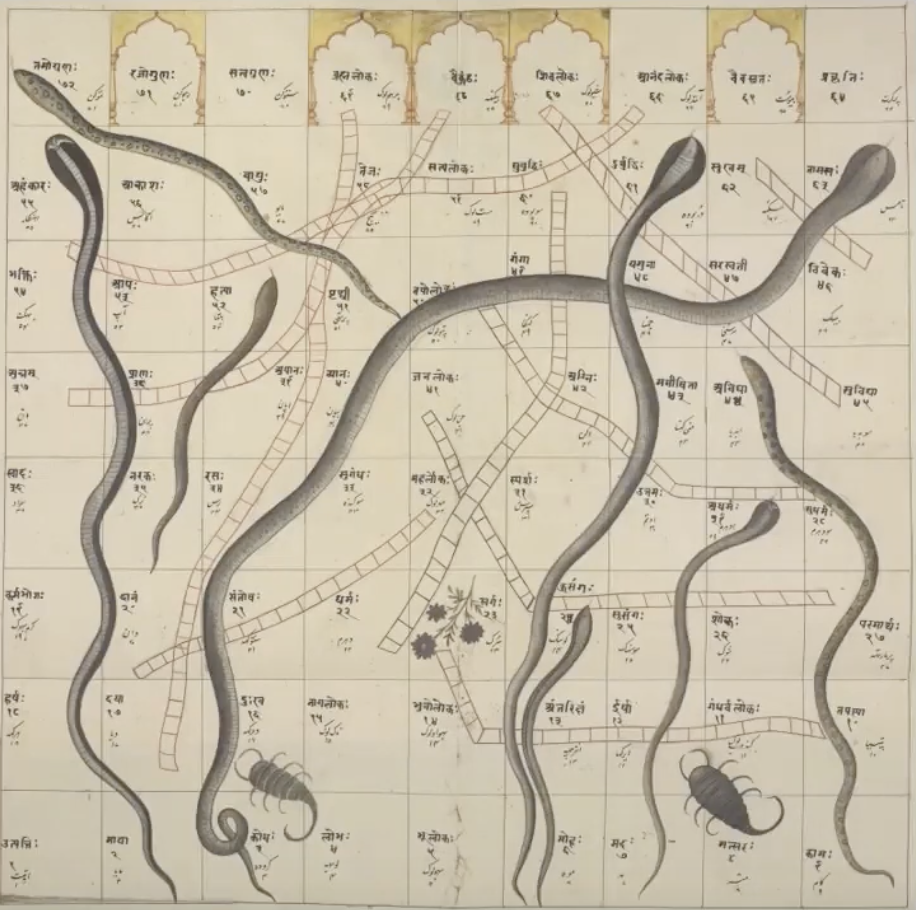 Today, the Vaishnava version of the game (72 squares) is called “Leela” which refers to the divine play in Hindu philosophy.